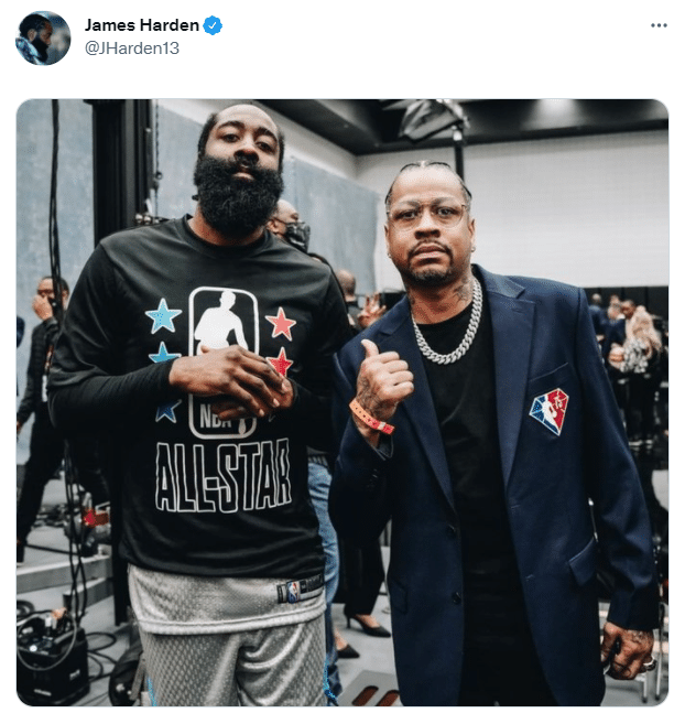 目前哈登已经正式成为76人队的一员,在克利夫兰全明星周末,哈登主动到杜兰特队更衣室,拥抱恩比德,并且参加拍摄75大球星合影;不久前哈登晒出与艾弗森的合影,还晒出自己身穿75大球星外套的画面。