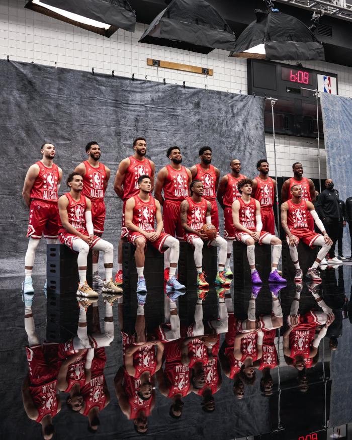 JRS直播02月21日讯 ,NBA2022年全明星周末最后一天,万众瞩目的全明星正赛来了,赛前詹姆斯队和杜兰特队拍摄定妆照和合影,杜兰特因祖母去世而缺席,杜兰特队玩疯了,恩比德、特雷-杨等球星在更衣室中赌博,维金斯等人看牌凑热闹。