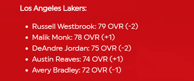2K22还公布了30支球队的球员数值变化,让我们来看看关注度较高的几支球队有怎样的变化——