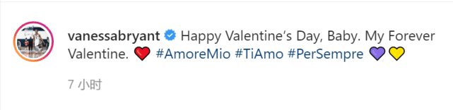 JRS直播02月15日讯 ,今天是美国当地时间的情人节,科比遗孀瓦妮莎更新IG社媒,晒出了一张自己和科比的昔日甜蜜合影,并配文写道:“情人节快乐,宝贝,我永远的爱人(爱心表情)。”科比离开两年多了,虽然天人永隔,但在这个特别的日子里,瓦妮莎不忘为他送上祝福。