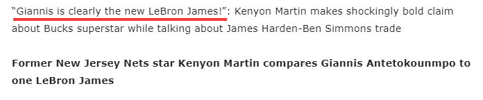 JRS直播02月14日讯 前NBA状元肯扬-马丁的言论引争议,他在节目中表示:很明显,扬尼斯是新的勒布朗,他每个赛季都能争夺常规赛MVP;换句话说,肯扬-马丁认为字母哥就是下一个詹姆斯。
