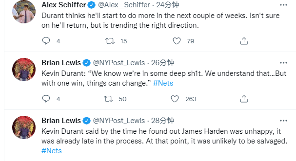 再次谈到关于哈登交易的话题,杜兰特表示:当我发现哈登不高兴时,已经是整个事态过程的后半段。在那个时候,一切已经不太可能被挽回。