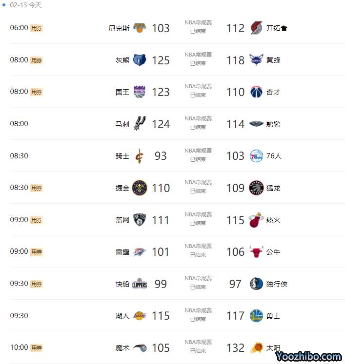 02月13日 NBA常规赛 所有比赛录像下载1080P【百度+阿里网盘】