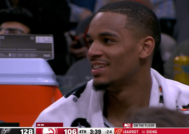 老鹰提前换下主力,穆雷也提前4分钟打卡下班,坐在替补席一脸笑容,最终马刺134-117大胜老鹰17分,赢球后马刺21胜35负排在西部第12位;本赛季穆雷顶替格林入选全明星,职业生涯首次入选全明星。