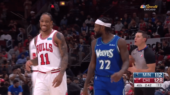 JRS直播02月12日讯,公牛134-122击败森林狼,德罗赞全场出战38分钟,投篮22中14轰下35分6篮板6助攻,正负值+19且没有失误,末节独砍16分,关键时刻伸手羞辱贝弗利太矮小太狠;德罗赞连续4场35+创纪录,比肩乔丹成公牛队史第二人。