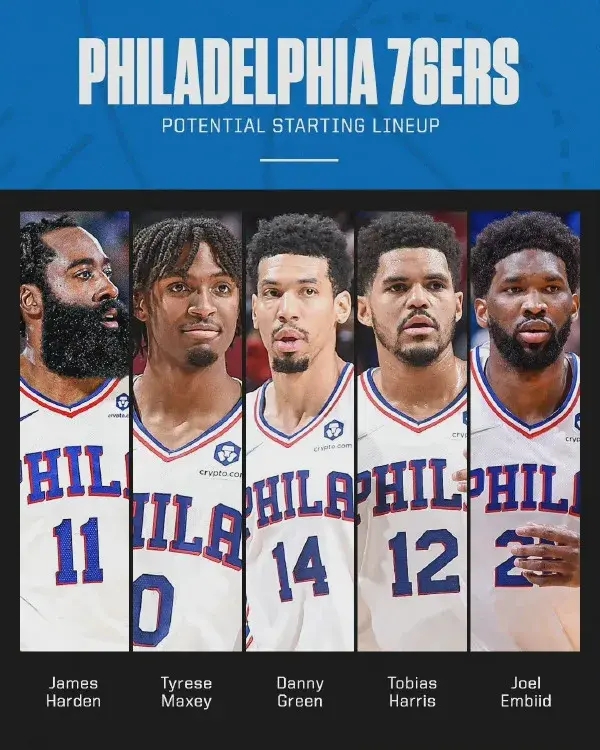 费城现在的阵容倒是很豪华,主力框架有大帝+哈登+塞布尔+马克西+哈里斯,防守组织高度投射内外进攻样样兼备,可以说是没有缺陷的存在。