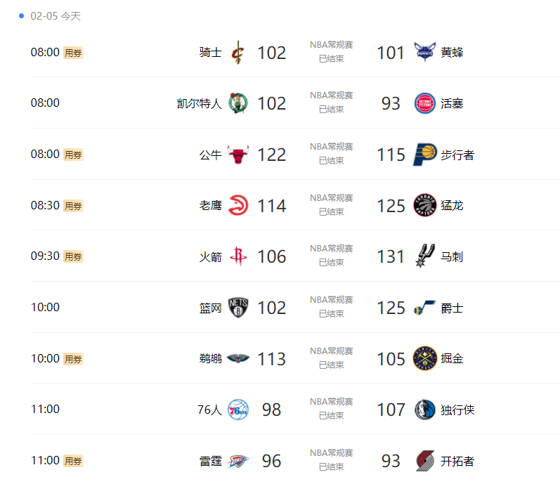 02月05日 NBA常规赛 所有比赛录像下载1080P【百度网盘】