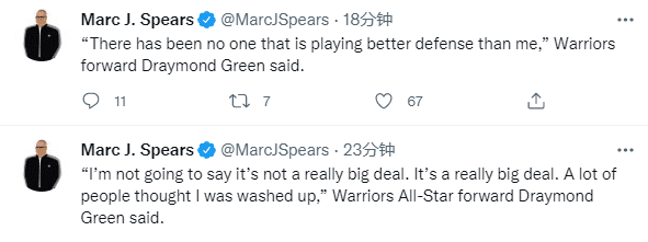 谈到入选全明星阵容,格林回应:我不会说这没什么大不了的,这真是一件大事(big deal)。之前很多人认为我过气了,很多人质疑过我,我也曾质疑过自己。