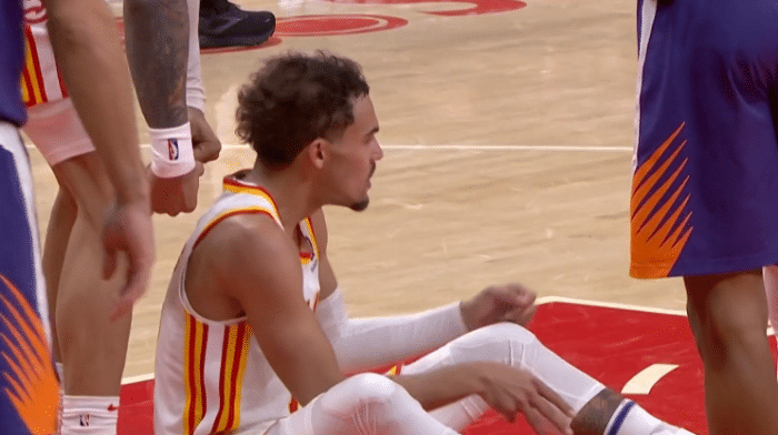 末节,老鹰牢牢掌控局面,并且领先到两位数,特雷-杨上场后强突打成2+1(罚球没进),坐在地板上霸气庆祝;最后3分钟,布克继续追分,特雷-杨罚球稳操胜局,老鹰关键时刻,亨特踩线失误,太阳再追2分,太阳也失误,特雷-杨三分杀死比赛,假装很冷,紧抱双臂庆祝,还有关键上篮,连得5分统治比赛,最终老鹰爆冷击败太阳,终结联盟第一的11连胜,不过老鹰主力科林斯受伤离场,但愿伤势无大碍。