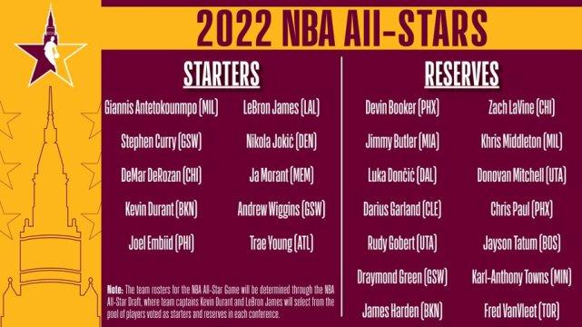 西部替补:保罗、布克、东契奇、德拉蒙德-格林、唐斯、戈贝尔和米切尔