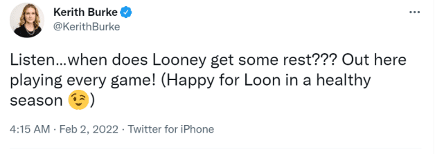 勇士的首发阵容里,只有卢尼一个人没有轮休,而且赛季至今,只有他一场都没缺席过,堪称铁人。勇士记者Burke为全勤卢尼点赞:“听着……什么时候卢尼能得到一些休息呢?他打了本赛季的每一场比赛!(很开心他这个赛季保持健康)。”赛季至今,卢尼表现出色,此前51场比赛全部出战,场均6.1分7.5篮板,很多时候,他的作用是数据无法体现的。
