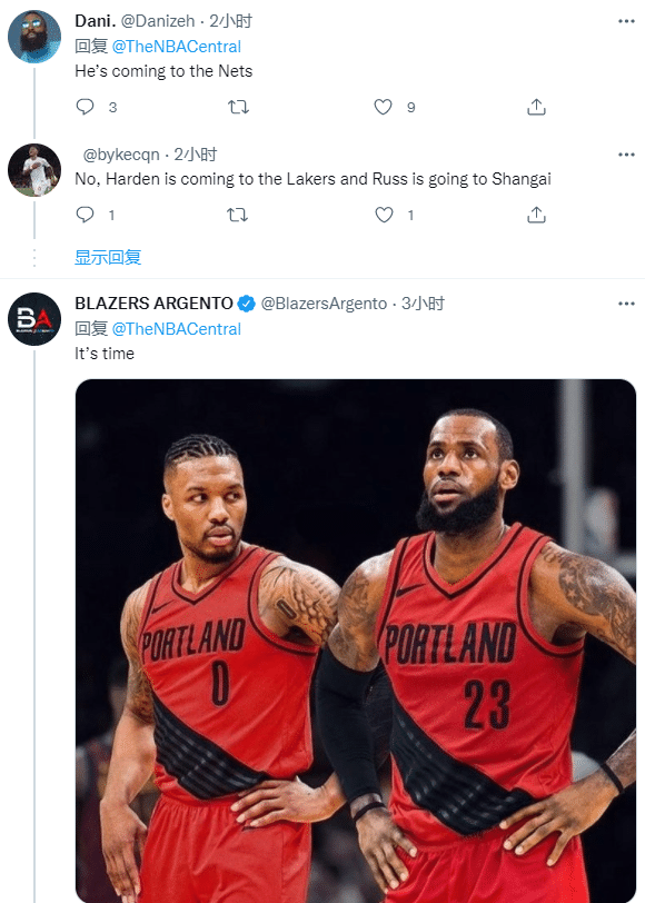 查尔斯-奥克利如此言论引热议,有球迷说詹姆斯将会去篮网,有球迷反驳詹姆斯不会去篮网,而是哈登加盟湖人,威少前往上海(神龟躺枪);也有球迷晒出詹姆斯身穿开拓者23号球衣联手利拉德的P照:是时候了。