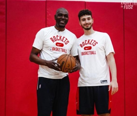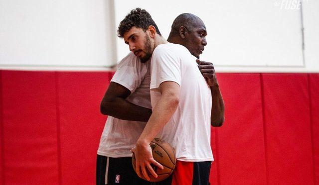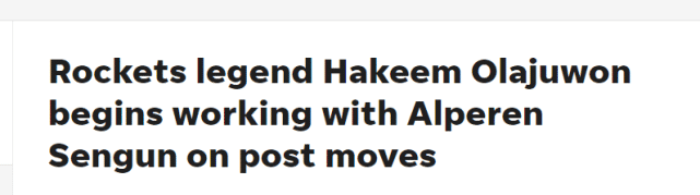 视频中,奥拉朱旺说:“我看过他打球,他背身单打的方式,看上去很强壮,我们现在要做的就是增强对球的控制,以及他的转身。”