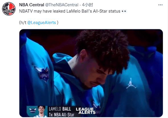 美媒NBA TV似乎提前泄露了黄蜂新星鲍尔将入选全明星的消息;在此前黄蜂对阵湖人赛前介绍时,美媒标出:拉梅洛-鲍尔,1届NBA全明星球员。