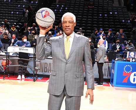 J博士是NBA历史和费城的传奇,1976年ABA与NBA合并时,他是ABA中最著名的球星之一。J博士带领球队在1982-1983赛季中一路过关斩将,季后赛仅仅输了一场,总决赛更是横扫了湖人队拿下NBA总冠军。37岁J博士退役的时候ABA纽约篮网队(现布鲁克林篮网队)和费城,都退役了他的号码,分别是32号和6号。