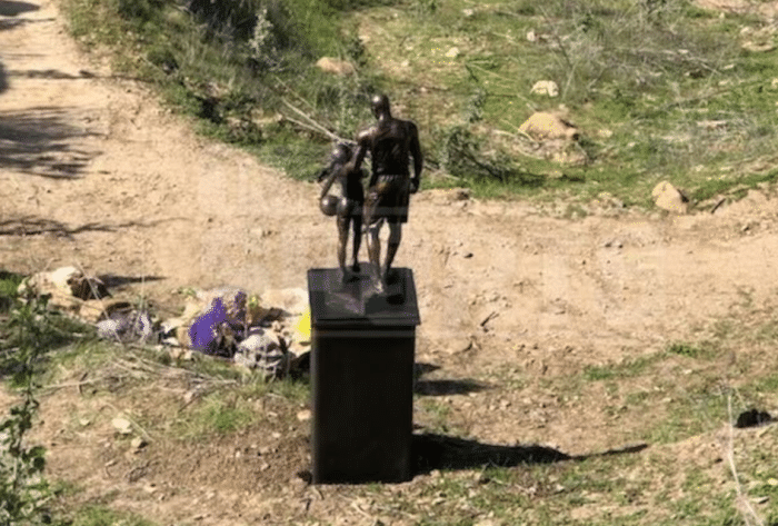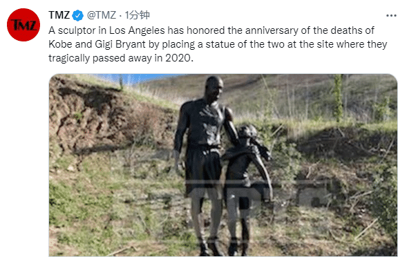 为纪念科比和吉吉·布莱恩特逝世两周年,洛杉矶的一位雕塑家在他们于2020年不幸去世的地点安放了一尊两人的雕像,这尊铜像重160磅,该雕塑家用一辆马车将其运到卡拉巴斯的事故现场;如此画面令人动容,铜像中科比湖人球衣,用胳膊搂着GIGI,GIGI穿着队服并且抱着篮球。