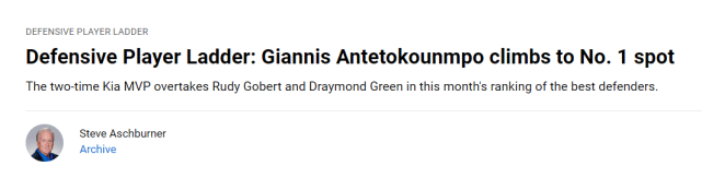 字母哥不但在MVP榜的排名上升,他在最佳防守球员榜上也升至榜首位置。场均干扰10.1次投篮,他防守下对方命中率下降3.9%,字母哥的防守表现稳定。布鲁克-洛佩斯长期伤停后,他承担了更重要的防守任务,在多项防守领域产生影响。2019-20赛季,字母哥曾同时捧起MVP和最佳防守球员奖,本赛季,随着杜兰特的伤停和库里的低迷,他又有机会做到这一点。