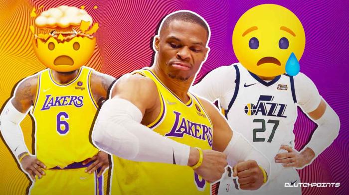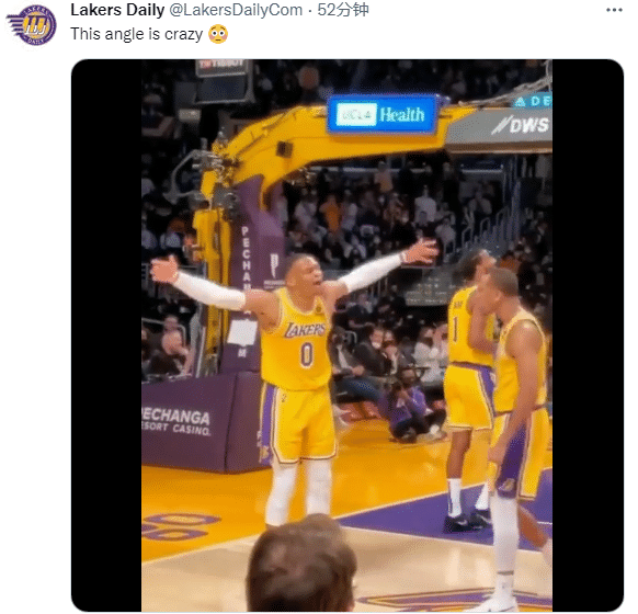 JRS直播01月19日讯 昨天湖人主场击败爵士从而终结三连败,威少关键时刻连得5分锁定胜局,全场最佳一球当属威少惊天隔扣史上最贵中锋鲁迪-戈贝尔;威少疯狂一扣点燃全美,打出了神龟该有的硬气和姿态,怒吼狂喷垃圾话激情庆祝,另一个角度显得更疯狂。
