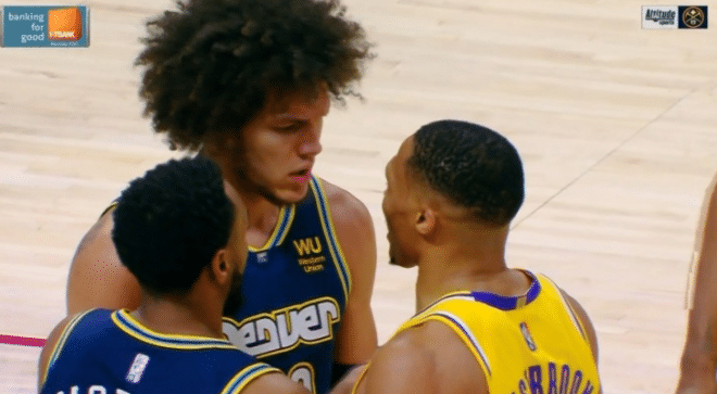 JRS直播01月16日讯今天NBA常规赛开始了一场焦点战,湖人客场挑战掘金,上半场湖人落后13分,下半场一度缩小差距,但约基奇把握机会,继续扩大优势。到了第三节,此役表现不佳的威少还和戈登起了冲突,一时还引发了两队球员围在一起。