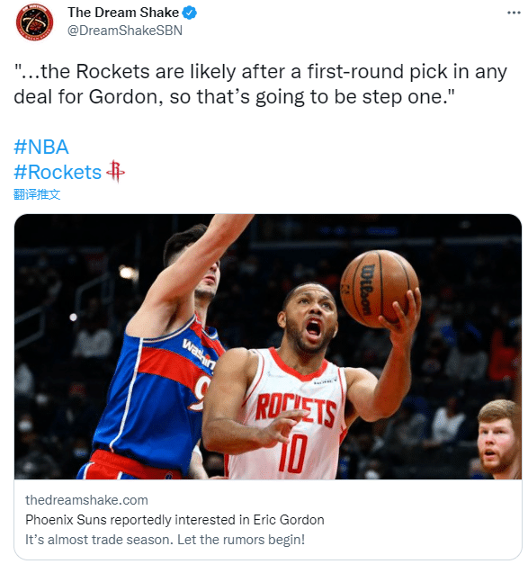 JRS直播01月16日讯 据美媒报道,联盟有多支季后赛级别的球队都在关注埃里克-戈登,其中太阳对戈登非常感兴趣,近期围绕戈登的大部分讨论都集中在太阳;火箭可能会在任何涉及戈登的交易中索要首轮选秀权。