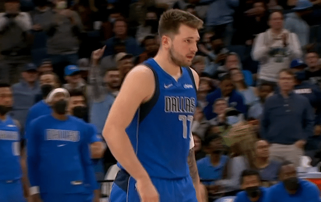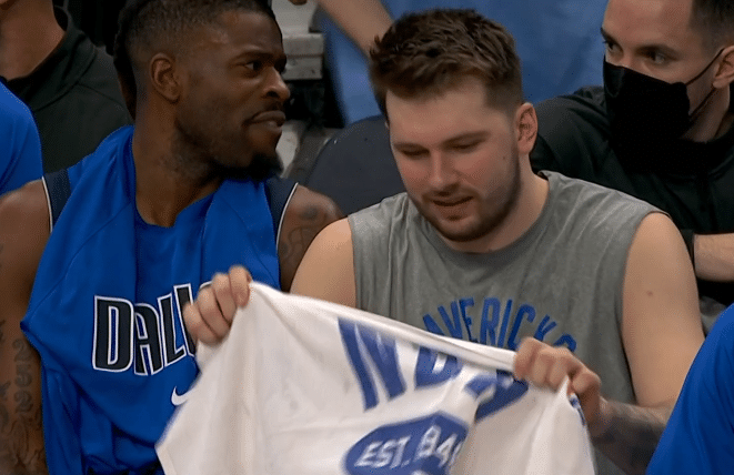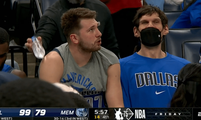东契奇早早换掉球衣,提前5分钟打卡下班。