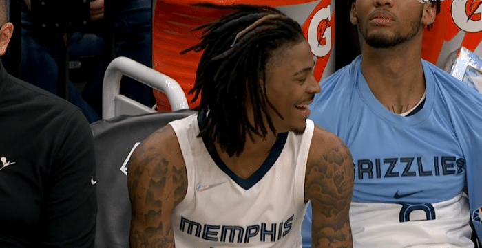 不过对于这一次失利,莫兰特心情一点也不差,坐在替补席哈哈大笑,说实在的,灰熊已经创造11连胜的队史最长连胜,输球也是难免的,莫兰特的心态很好。