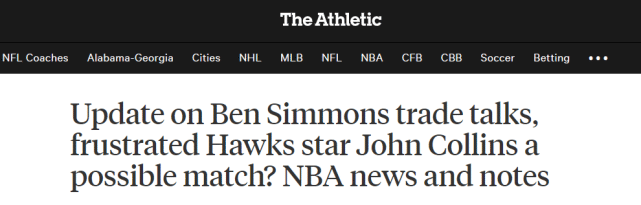 老鹰是最近对西蒙斯感兴趣的球队之一,队内的科林斯和雷迪什可能成为交易筹码。科林斯对自己在老鹰扮演的角色越来越沮丧,因为他的场均投篮次数和使用率在下降。24岁的科林斯在1月15日后就将具备交易资格。76人仍在坚持要高价,如果他们在交易截止日前无法送走西蒙斯,预计会在今年夏天再次尝试。