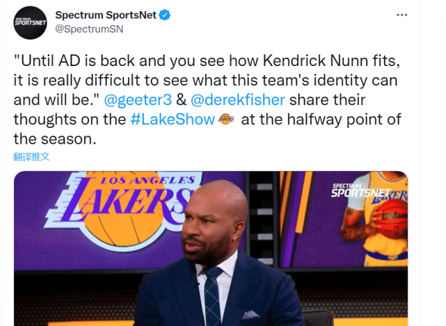 JRS直播01月11日讯 在昨天不敌灰熊后,湖人本赛季战绩来到21胜20负,常规赛赛程已经过半,很显然紫金军团的战绩并没有达到预期。虽然造成这个局面跟球队长期有重要球员缺席有很大关系,但与此同时,湖人现有阵容磨合不佳也是一个事实。湖人5冠名宿费舍尔今日做客洛杉矶当地节目,谈到了赛季过半对于湖人队的看法。