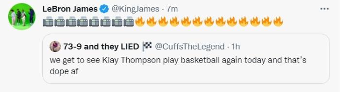 除此之外贝弗利发推“篮球比赛想念你,克莱-汤普森