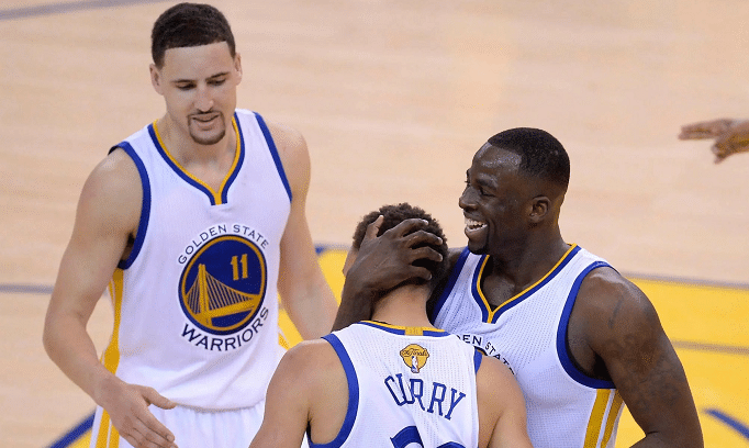 追梦格林赛前热身的时候有受伤,所以经历开场致敬克莱之后,追梦格林主动犯规被换下。值得一提的是追梦跳球时不起跳,球权直接送给骑士,而骑士这边也配合着不进攻,等待犯规后将受伤的追梦格林换下,很暖心的行为。