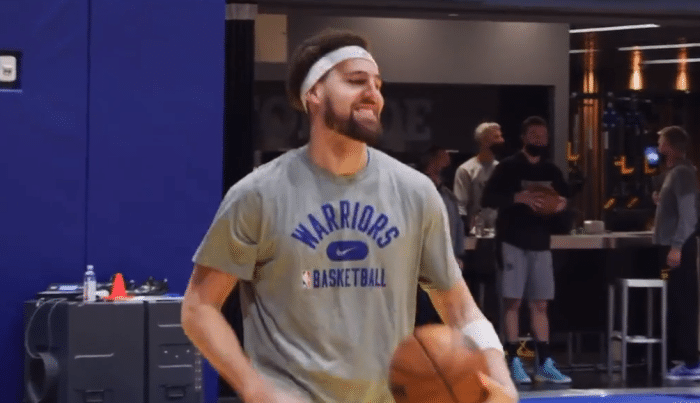 美媒还晒出汤普森身穿勇士训练T恤的画面,训练之余,汤普森对于即将复出的心情很好,把球扔向空中,接住篮球之后他满脸笑容而且蹦蹦跳跳十分开心,这样的快乐太纯粹。