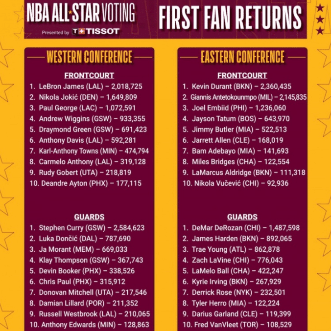 JRS直播01月08日讯 ,是2022年NBA全明星投票的双倍计票日,也就是说球迷的每一票都双倍计入,这样的情况下NBA的球员们、球队都在呼吁球迷们投票,其中包括詹娜呼吁给自己的男友投票,要知道詹娜的粉丝基数是非常庞大的。还有篮网为哈登拉票,勇士为库里、追梦格林等人拉票。湖人为詹姆斯拉票等等,大家都希望自己的球员可以进入到今年的全明星正赛阶段。