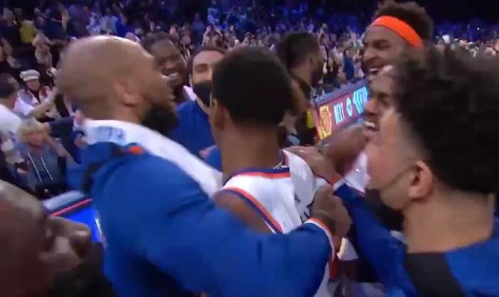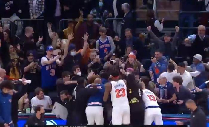 巴雷特投进绝杀的时刻,整个麦迪逊广场花园都沸腾了。队友们纷纷扑向巴雷特庆祝,将他压在了技术台上。而尼克斯球迷更是欢欣鼓舞,露出了灿烂的笑容。相比之下,远道而来的对手球迷则不断摇头,不敢相信自己看到的一切。