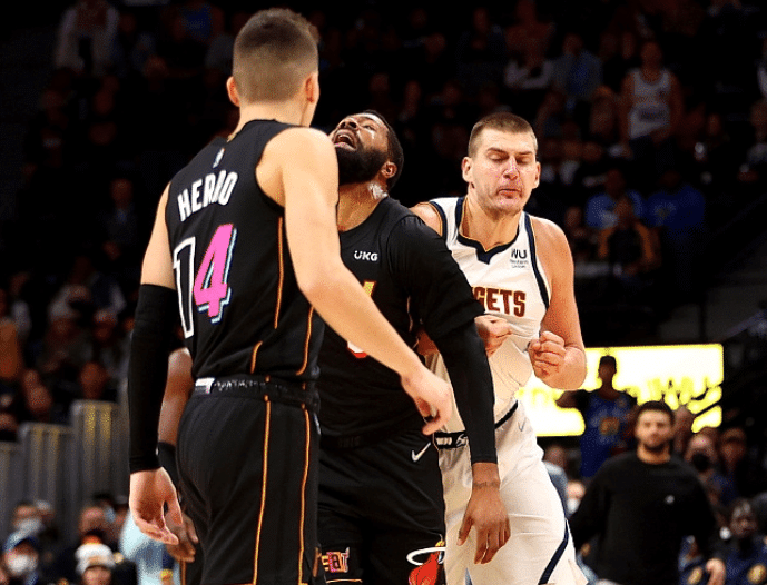 去年11月份,掘金和热火比赛中发生恶劣的冲突事件,大莫里斯恶意犯规惹怒约基奇,约基奇情绪失控,从背后推倒大莫里斯,大莫颈部受伤并且痛苦倒地;赛后更是出现恶劣的堵门事件,巴特勒带队堵掘金更衣室的门,莫里斯兄弟和约基奇的两个哥哥隔空互怼。