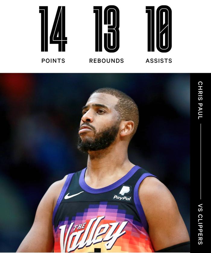 本场比赛,太阳上半场牢牢掌控比赛,不过下半场快船疯狂反扑,一度追到仅仅落后3分,可关键时刻圣保罗挺身而出,一记三分和两次助攻稳住局面,早早终结比赛悬念,最终太阳106-89大胜快船17分,三连胜后太阳30胜8负继续排在联盟第一,领先勇士1个胜场。