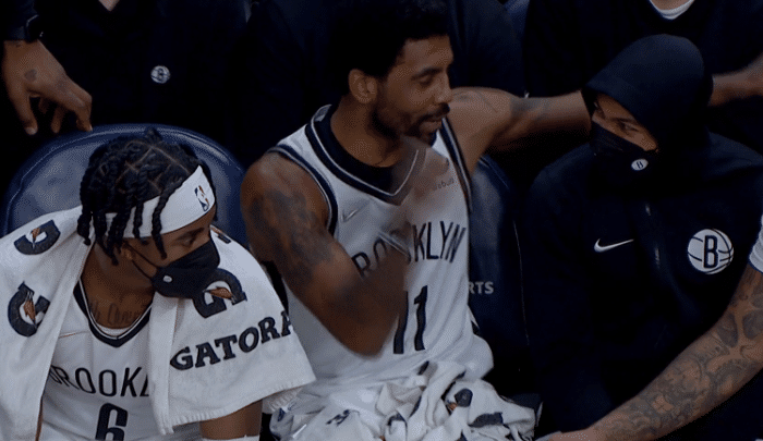 暂停回来,欧文突破上篮,本布里大帽,欧文执行技犯罚球,锁定胜利后欧文拥抱哈登,最终篮网逆转赢球,终结自己的3连败。