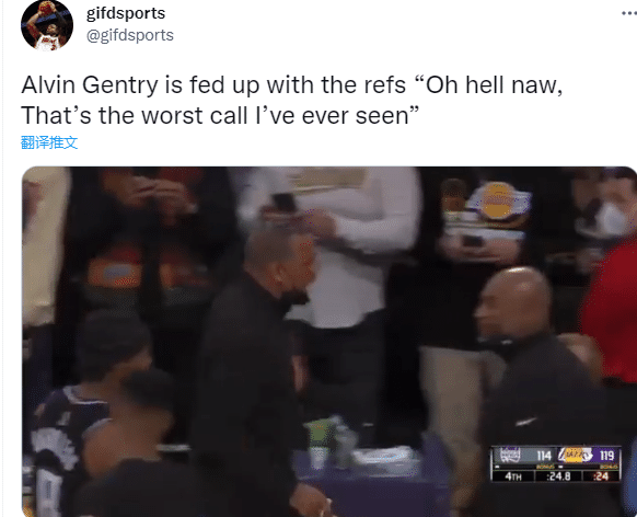 赛后,金特里仍旧对裁判关键时刻的吹罚很不满。