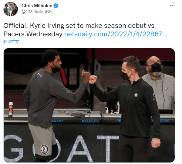 篮网官方已经确定欧文将在明天复出从而迎来赛季首秀,赛季至今,欧文已经缺席了35场比赛,期间篮网拿到23胜12负的战绩,排在东部第二。