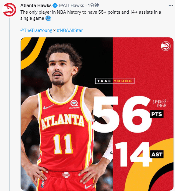 今天特雷-杨打出生涯最佳一战,全场26投17中、三分12中7、罚球15中15狂砍56分14助攻4篮板,生死时刻连续命中续命三分,成为史上第一位单场至少55+14的球员,单场56分也创本赛季单场最高得分,可即使如此,西蒙斯仍带队赢球,吹杨沦为本赛季最强空砍王。