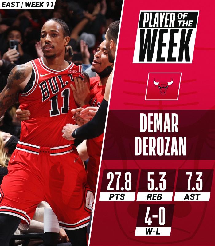 德罗赞本赛季第2次当选周最佳,也是生涯第13次当选。