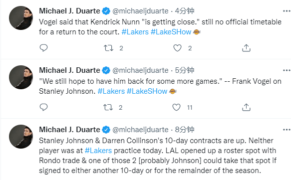 对于约翰逊,沃格尔还表示:我们希望他能回来打更多的比赛,他可能会成为球队的X因素。