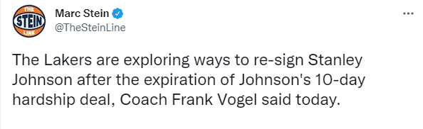 25岁约翰逊是15年首轮8号秀,本赛季已经为湖人出战5场比赛,场均上场25.2分钟能够拿到6.8分2.8篮板1.4助攻1.2抢断,3次首发出战全都帮助球队赢球;约翰逊十天合同到期,现在湖人可以直接和他续签一份打到赛季结束的合同,或者等到1月6日再和签下十天合同。