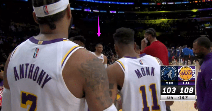 JRS直播01月03日讯 ,湖人主场108-103险胜森林狼,詹姆斯苦战39分钟拿到26分7篮板5助攻3抢断1盖帽,累得双手扶着膝盖直喘粗气,连续7场30+纪录被终结;湖人赢球十分惊险,关键时刻威少出现致命失误——终场前14.2秒,威少边线发球直接五秒违例。