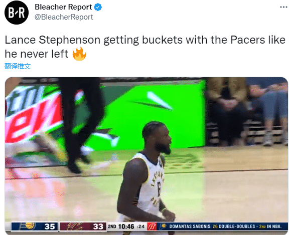 第一节3分57秒,史蒂芬森替补上场,1分34秒,师弟持球单打古德温,急停跳投稳稳命中,重返印城第一次出手便命中,之后外线三分打铁不中;第二节,史蒂芬森迎着乐福直接干拔得分,半场4投3中拿到6分还送出2次助攻,对于师弟的表现,美媒《露天看台》直言:史蒂芬森的表现就像从未离开印第安纳。