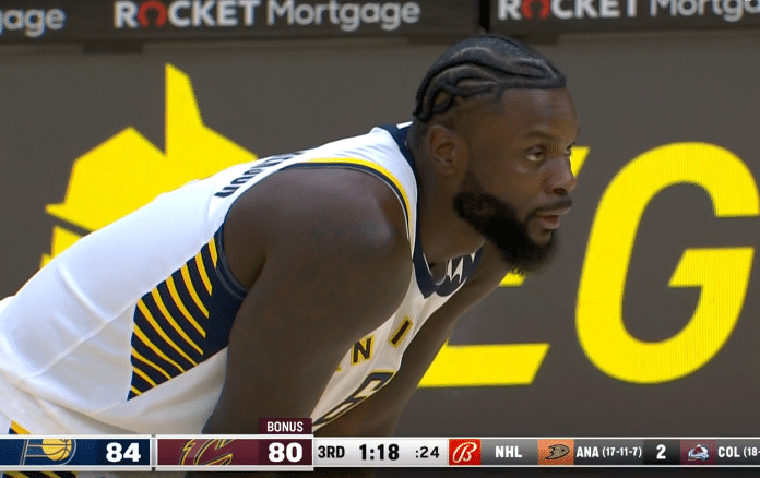 下半场,第三节步行者稍微扩大领先,3分26秒师弟再次上场,变向突破却脚下打滑直接摔倒,站起来赶紧站起来向主帅示意这球怪自己,之后史蒂芬森三分打铁,以及对乐福犯规,1分18秒,师弟被换下坐回替补席;步行者努力大半节,无奈突然被骑士打出15-0攻势,从落后11分到反超4分,乐福立功了。
