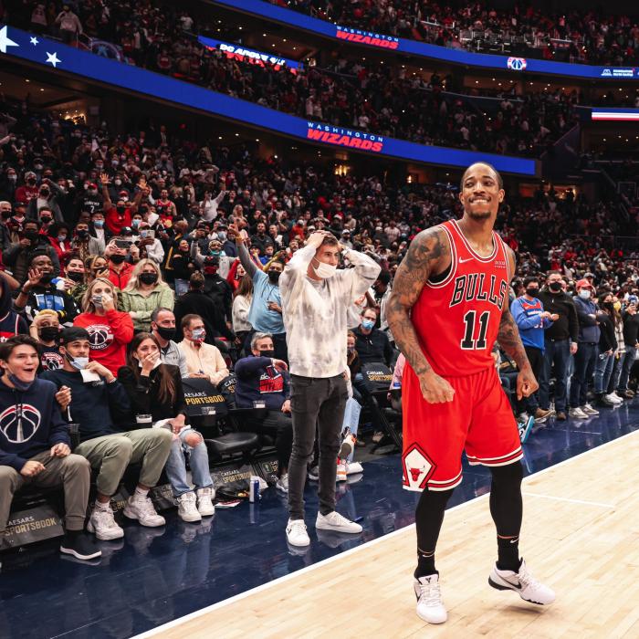 JRS直播01月02日讯 ,公牛和奇才上演神剧情,关键时刻库兹马轰进三分准绝杀,随后德罗赞迎着奇才两名球员的防守投进压哨三分,德罗赞连续两场投进压哨三分成为NBA历史上第一位背靠背三分压哨绝杀的球员。