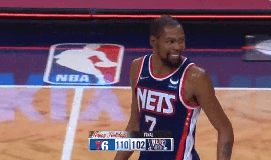 JRS直播12月31日讯 ,NBA常规赛篮网主场不敌费城,杜兰特解除隔离并且复出轰下33分7篮板,哈登延续火热状态,全场20投9中、三分5中1、罚球18中14轰下33分14篮板10助攻2抢断,连续三场30+,无奈杜登合砍66分仍输球。