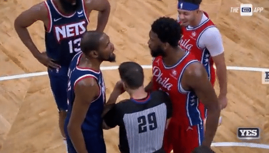 本场比赛,杜兰特和哈登都砍下30+,哈登又贡献30+三双,恩比德则是贡献34分6篮板,关键时刻制胜一球打得KD心里不爽,两人发生冲突摩擦。
