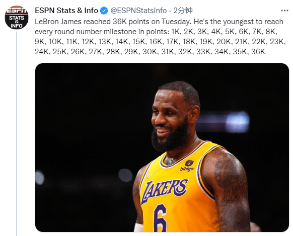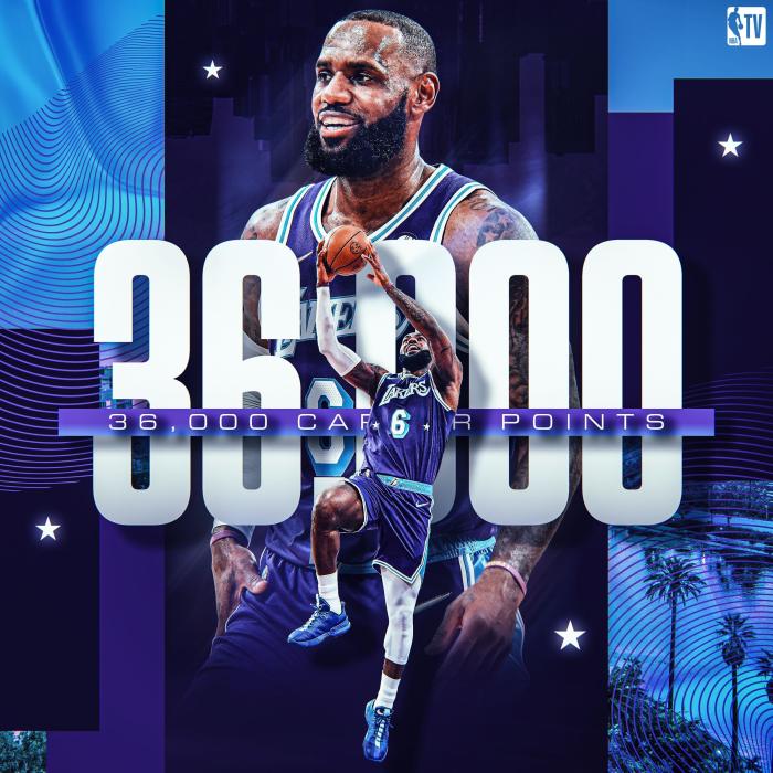 第三、詹姆斯正式达成36000分里程碑,仅次于贾巴尔和马龙成为历史第三人