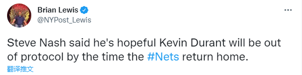 到目前为止,杜兰特感染新冠后已经被隔离8天了,根据联盟最新的防疫规定,联盟已经把阳性球员的隔离期从10天缩短为6天(shams报道是缩短为5天),前提是该球员已经接种疫苗且无症状,因此可以推断,杜兰特应该已经可以解除隔离,有望出战篮网和76人的比赛。